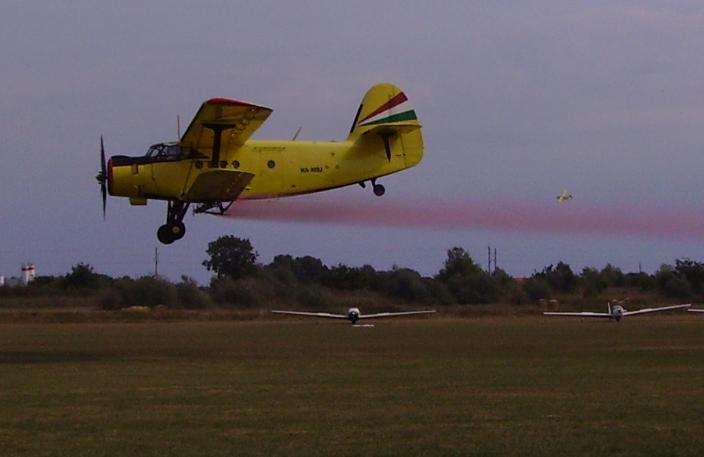 Miután a transzparens földet ért a reptér sarkában és a Piper Pawnee is landolt néhány áthúzást követően, kis szünet után, melynek során ismét felszálltak a modellgépek, sor került a rendezvény sokunk által nagyon várt hagyományos fénypontjára, az ötgépes An-2 kötelék bemutatójára. Minden évben meghatározó élmény, amikor az öt Ancsa felsorakozik a közönség előtt, majd feldübörög mind az ötezer lóerő, ahogy a gépek együtt a levegőbe emelkednek. Felszállás után az Ancsák alakzatba rendeződtek, majd egy pálya fölötti áthúzást követően eltűntek a közönség háta mögött, hogy a repülőteret szegélyező erdő mögül hirtelen felbukkanva térjenek vissza a légtérbe. A kötelék látványos szétválását követően két Ancsa színezett vizet permetezett a reptér fölött, mégpedig olyan precizitással, hogy a gépek futóműve szinte éppen csak nem érintette a talajt.